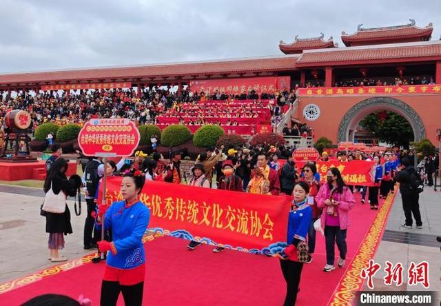 3月29日,正值农历三月初一,“天下妈祖回娘家”启动仪式在福建省莆田市湄洲妈祖祖庙天后广场举行。图为台湾进香团入场。中新社记者 吕明 摄