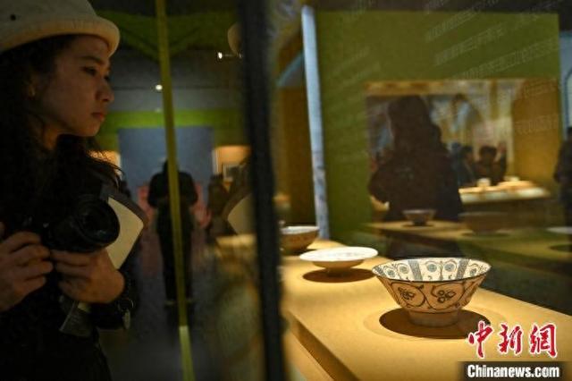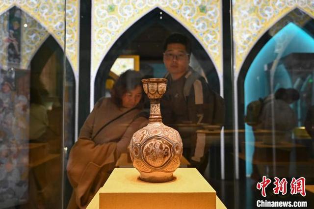 4月1日,广东广州,广东省博物馆“群星点亮的夜空——波斯文化艺术瑰宝展”中的陶器吸引观众。该展通过“婆娑大地”“镜像之境”“融荣互通”三大篇章,展出示德黑兰礼萨·阿巴斯博物馆、德黑兰大学穆卡达姆博物馆等五家伊朗专题博物馆的151件馆藏精品,向观众呈现丰富多元的波斯文化艺术及中国伊朗两国悠久灿烂的文明交流、互学互鉴的美好华章。中新社记者 陈骥旻 摄