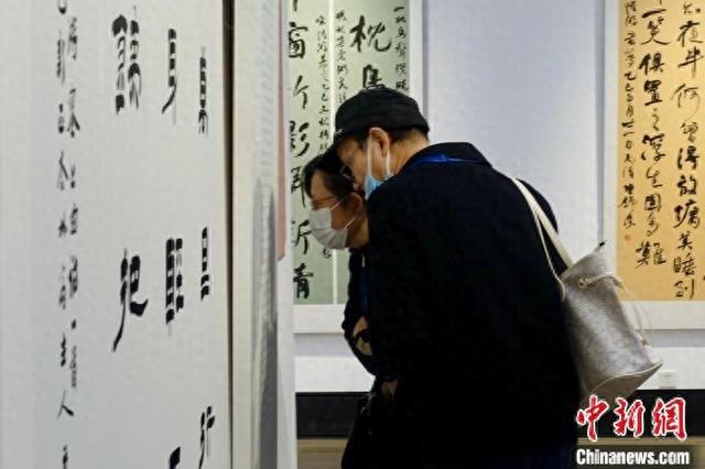4月1日,书法爱好者在参观展览。中新社记者 钱晨菲 摄