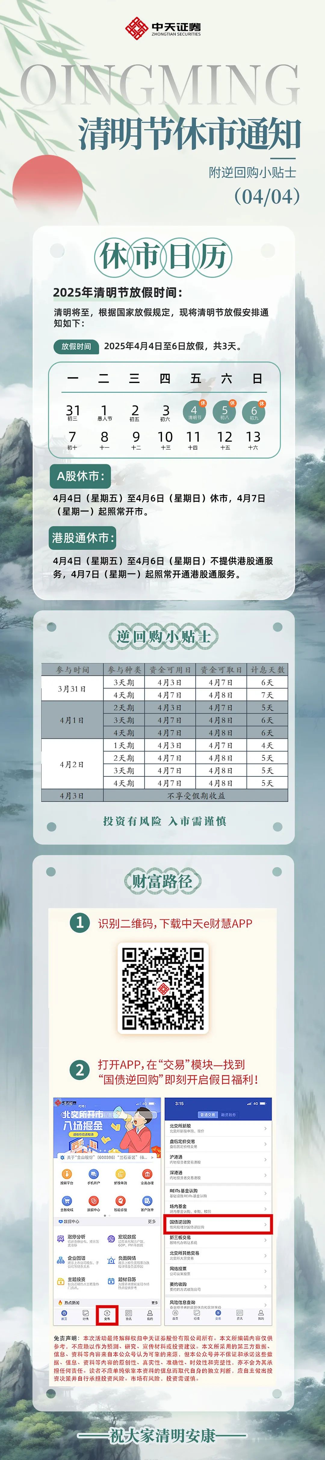 【休市通知】清明节休市通知(附国债逆回购攻略)