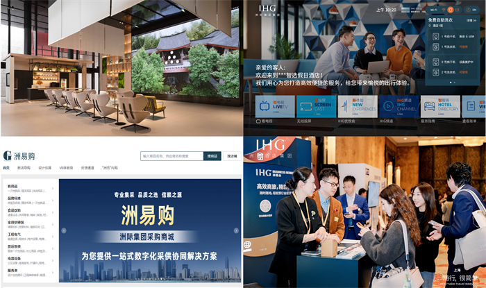 四大金刚,四维赋能顺时针依次为:洲际设计创新空间、IHG® Studio洲际视界客房电视娱乐系统、2025洲际酒店集团大中华区酒店巡展上海站、“洲易购”采购平台