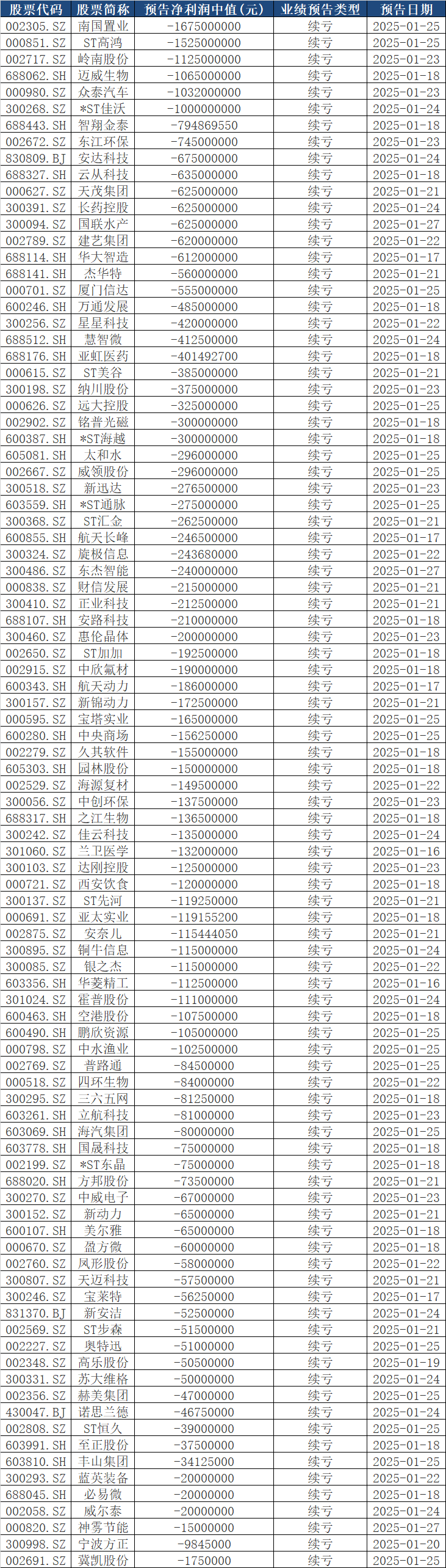 以下为根据已披露的2024年业绩预告数据,整理了续亏部分的个股,供大家投资参考。