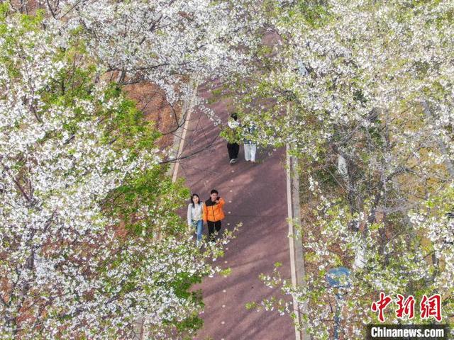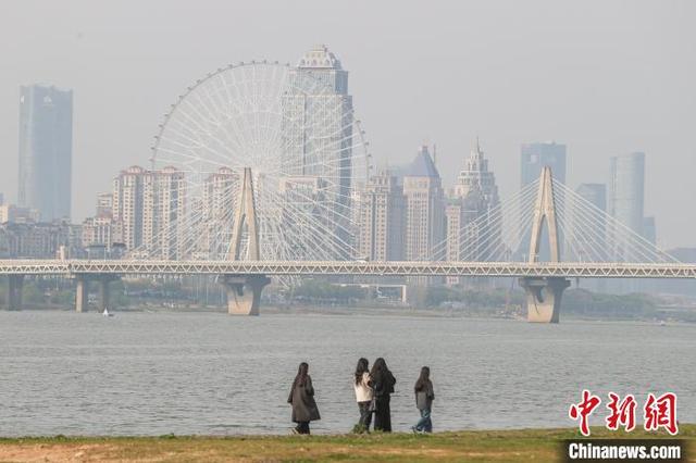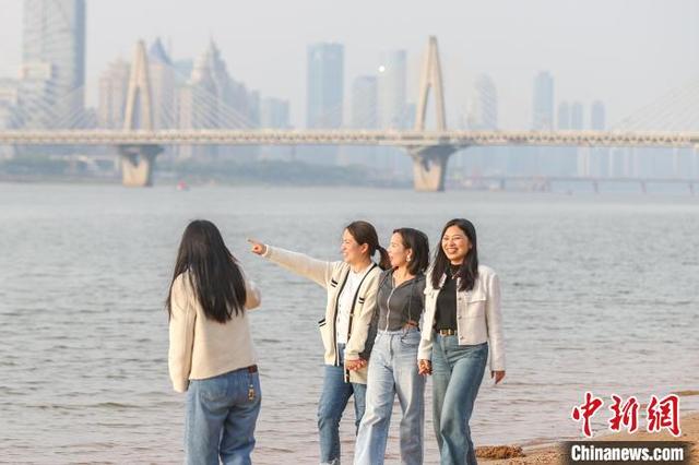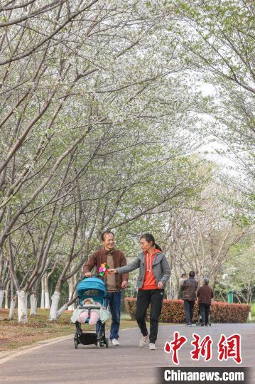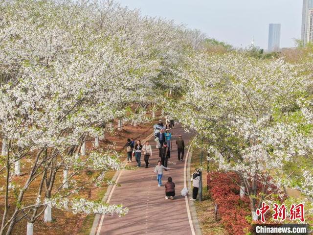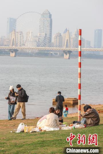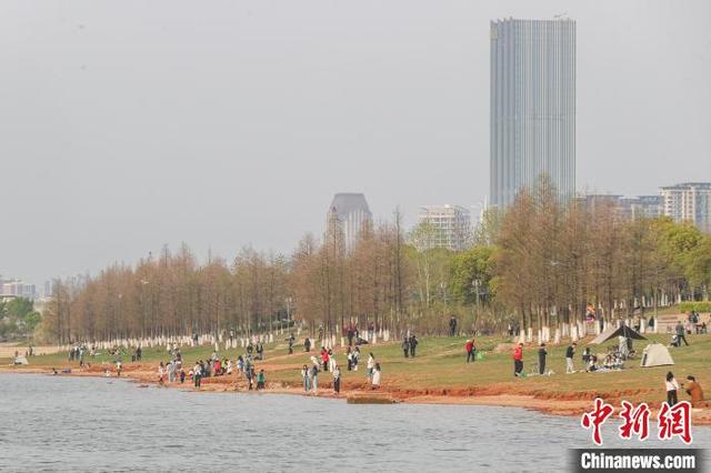 4月1日,江西南昌西湖区,民众在赣江之滨的朝阳江滩公园里散步。当日南昌春光明媚,南昌朝阳江滩公园樱花绽放青草丰满,不少民众来此踏春赏花和露营,享美好时光。中新社记者 刘力鑫 摄
