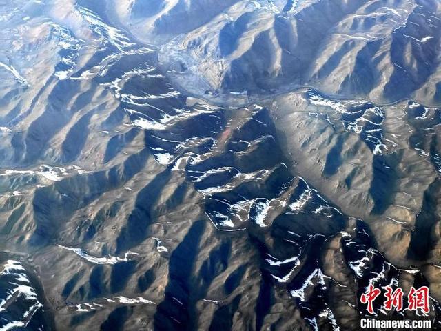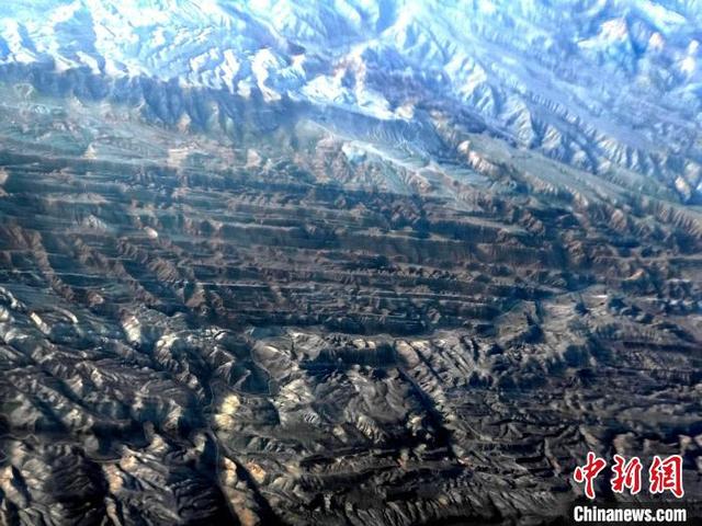3月31日,从飞机上航拍位于新疆境内的天山山脉,只见冰雪覆盖下的雪峰巍峨矗立,千沟万壑的地貌交错分布,尽显雄浑壮美,让人不禁感叹大自然的鬼斧神工。中新社记者 王小军 摄