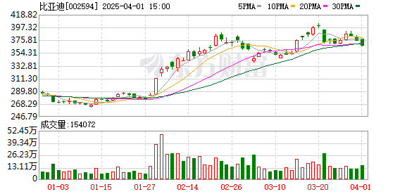 数据显示,比亚迪股份3月份销售新车377420辆,其中新能源乘用车销量371419辆,同比增长23.1%。