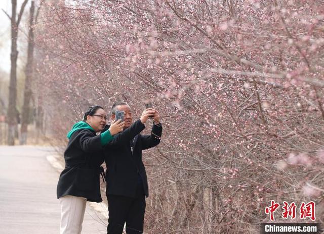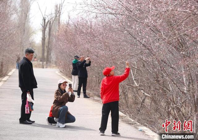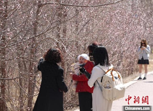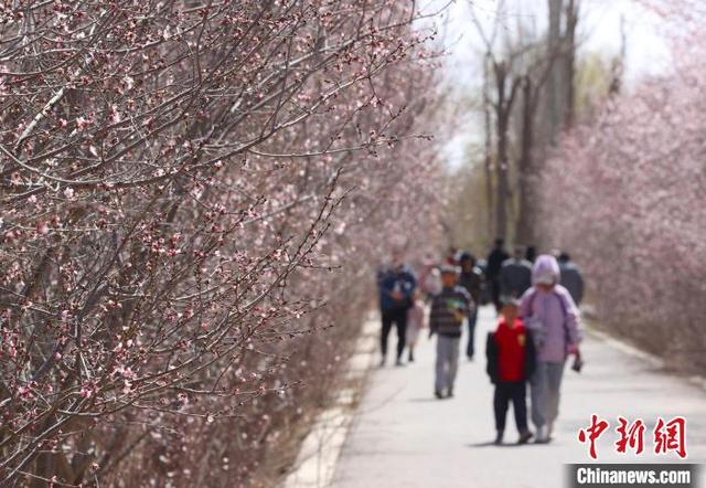 4月1日,宁夏银川,市民赏桃花。近日,宁夏银川市的桃花陆续开放,吸引了众多市民和游客前来踏青赏花,享受春日的美好时光。中新社记者 于晶 摄