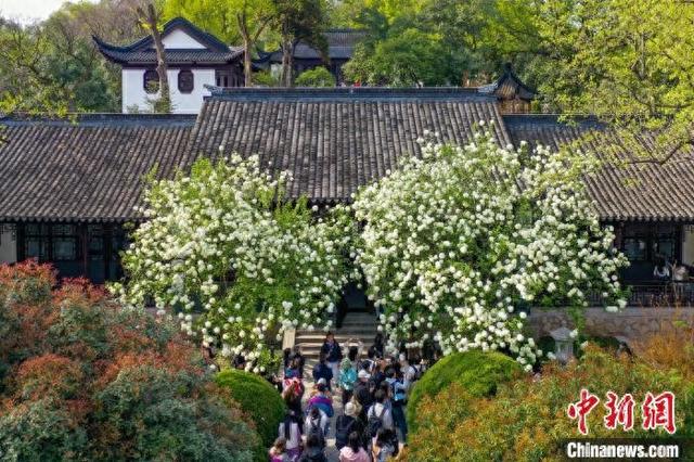 4月1日,江苏南京,修缮完工的清凉山崇正书院对外开放。崇正书院是南京市文物保护单位,于明代嘉靖41年(1562年)由时任南京督学御史的耿定向创建,在此后的岁月中,崇正书院几遭损毁。20世纪80年代,书院由著名建筑家杨廷宝主持规划、设计、重建。据了解,此次修缮消除了文物建筑因自然风化、环境影响、人为因素造成的种种损伤,不仅确保文物建筑安全,还恢复了历史风貌。目前,这里的木绣球也已盛放,窗棂掩映间,幽香扑鼻,与古色古香的建筑相辉映,营造出浓浓的书卷气。图为市民和游客在崇正书院内参观。(无人机照片)中新社记者 泱波 摄