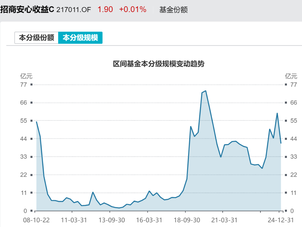 马龙接手后,招商安心收益债券C的收益更显稳健,规模也开始不断做大,至今已然是40多亿的规模。