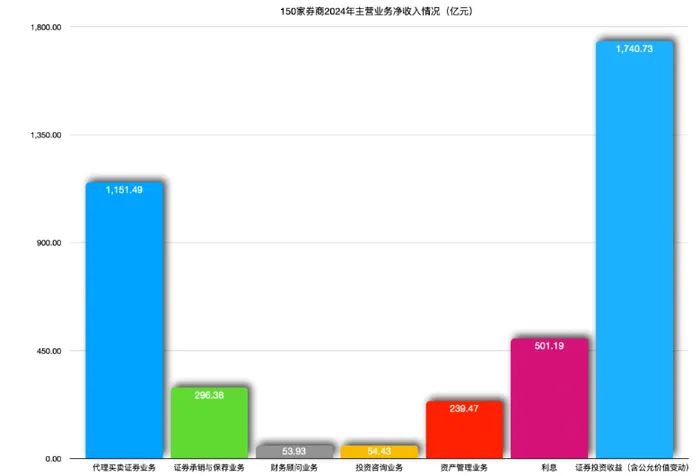 从资管业务方面来看,公、私募资管规模的增长直接拉动了券商资管业务收入的增长。根据中国证券投资基金业协会统计,截至2024年末,券商及其资管子公司私募资管产品规模合计达5.47万亿元,较上年末增长3%。公募基金管理机构管理公募基金规模32.83万亿元,较上年末增长18.9%,其中,非货公募基金管理规模19.22万亿元,较上年末增长17.7%。