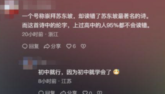 在一次直播时,董宇辉或许一时兴起,他朗诵了苏轼的《念奴娇·赤壁怀古》,把诗句中的“羽扇纶(guan)巾”,误读成了“羽扇纶(lun)巾”;