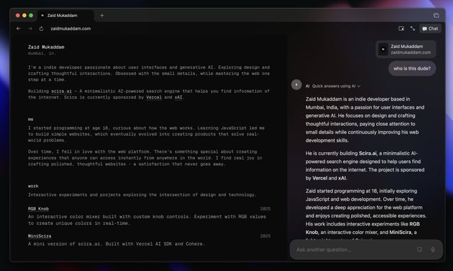 开发团队认为,AI不应该只是一个应用或一个按钮,而应该成为浏览器底层的能力。