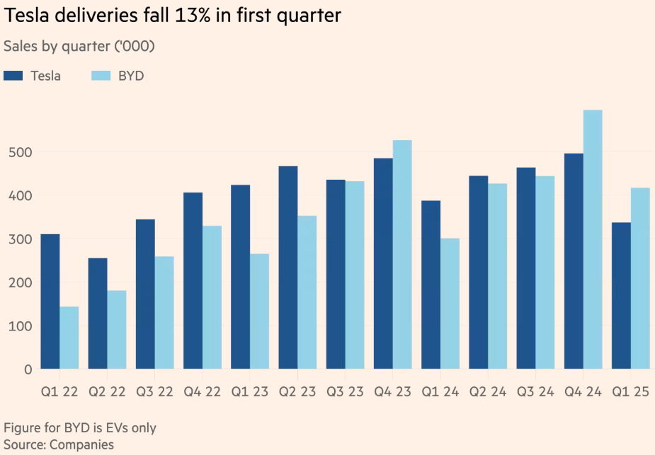 艾夫斯说:“我们不会戴着玫瑰色的眼镜看待这些数字......它们在每个指标上都是一场灾难。一季度是马斯克对特斯拉造成损害的一个例证。他对Doge越是政治化,品牌就越受影响,这一点毋庸置疑。”