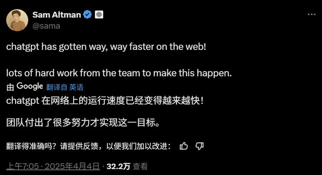 也有人对于 ChatGPT 是否有足够的 GPU 感到担忧,毕竟此前 GPT-4o 生图功能已经造成了很大的延迟。不过奥特曼表示,ChatGPT 最近又有工程改进: