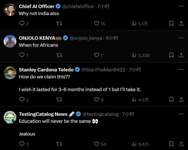 人们对于 OpenAI 的大面积免费表示欢迎,表示教育会因此而改变,同时希望继续扩大覆盖范围和时长: