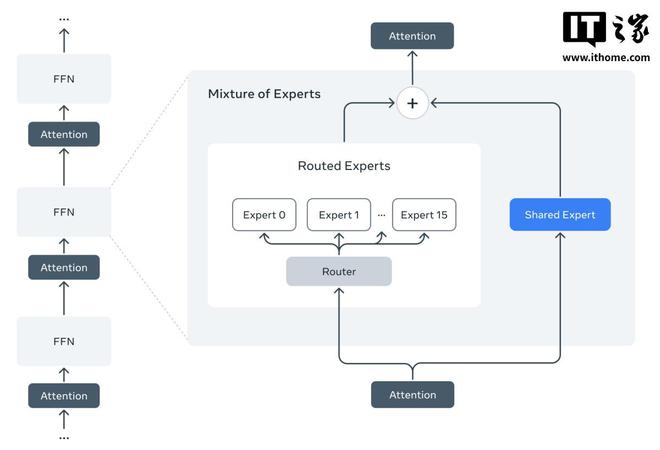 Meta 表示,Llama 4 系列模型是该公司旗下首批采用混合专家(MoE)架构的模型,这种架构在训练和回答用户查询时的效率更高,所谓“混合专家架构”基本上是将数据处理任务分解为子任务,然后将它们委派给更小的、专门的“专家”模型。