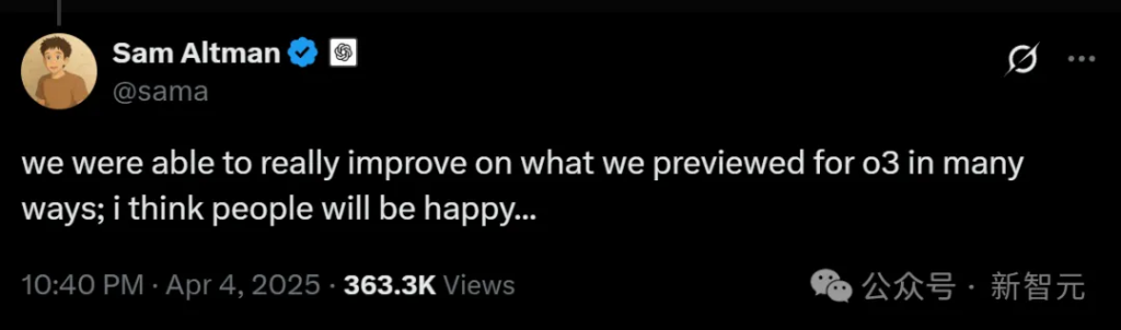尽管没有更多关于o3和o4mini的细节内容,但是Altman表示,OpenAI在很多方面真正改进了o3模型,一定会让用户大为满意。