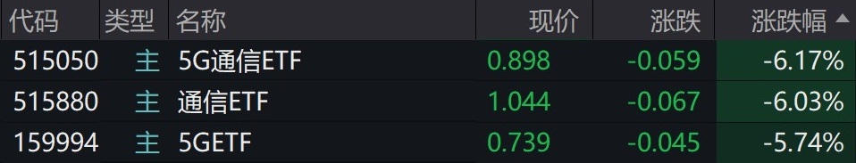 受盘面影响,5G、通信相关ETF跌约6%。