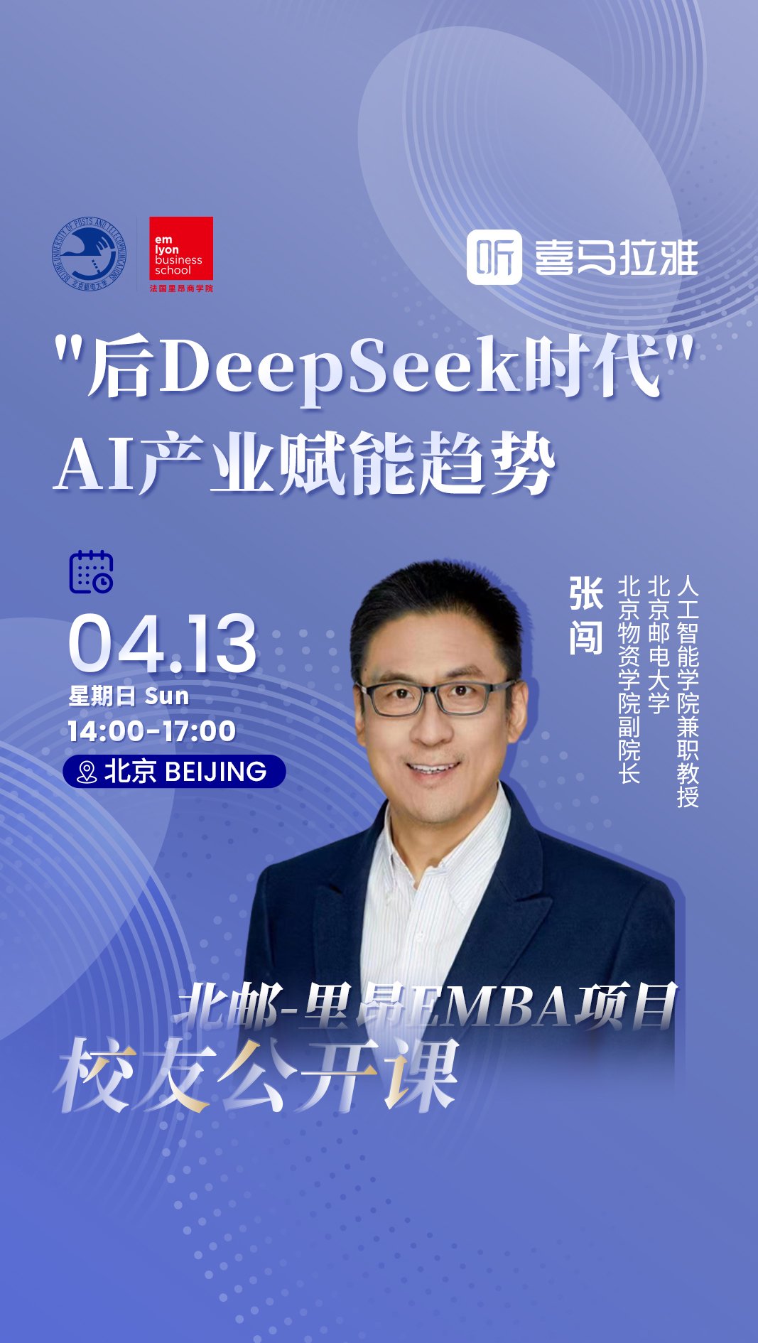 4月13日,北京邮电大学-法国里昂商学院EMBA(中外合作办学)项目特邀北京邮电大学人工智能学院博导、北京物资学院副院长张闯,为校友带来重磅主题分享——《后DeepSeek时代AI产业赋能趋势》。张闯将结合国家“AI+”专项行动计划,解析“后DeepSeek时代”人工智能大模型最新发展趋势,对AI场景化关键路线、核心技术、组织重构等要素进行分享。