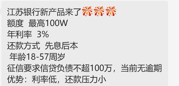 “消费贷新产品来了!额度最高100万,年利率3%!”