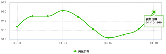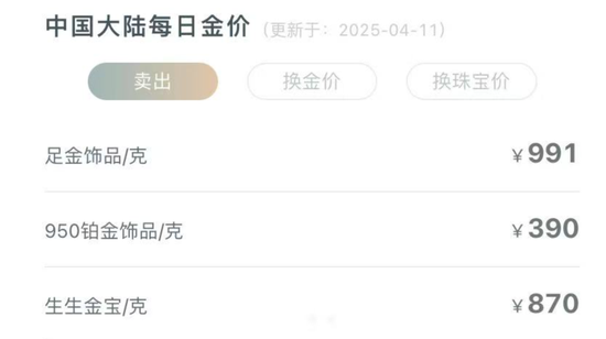 4月11日,老庙足金饰品标价也攀升至983元/克,相较于前一日的957元/克,单日上涨26元/克,两日累计上涨53元,四日累计上涨65元。