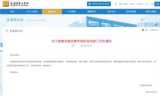 由于黄金价格暴涨,4月3日,上海黄金交易所(简称“上金所”)发布《关于继续加强近期市场防范风险工作的通知》(以下简称《通知》)。《通知》称,近期影响市场运行的不确定性因素较多,贵金属价格持续大幅波动,市场风险加剧。