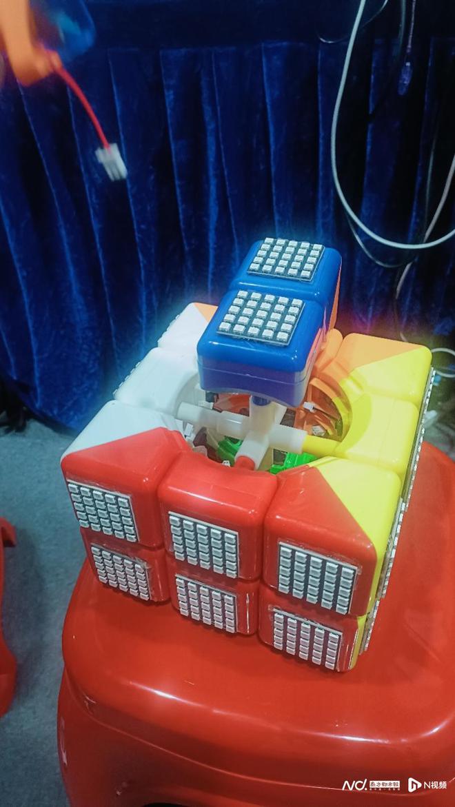 也有学生制作了一款专为老年人设计的智能魔方,它能够将手机和电脑上的二维益智游戏内容同步展示在三维实体魔方上,使得实体魔方不仅支持多人远程实时竞技,还能实现瞬间复原等功能。此外,通过精心设计的游戏内容,该智能魔方能够同时锻炼用户的脑部活动和动手能力,有效促进对空间、形状、颜色、逻辑推理和记忆等认知功能的训练。后台服务器将记录游戏数据,并利用AI人工智能学习构建大数据模型,以实现对认知功能的评估和提供个性化训练游戏方案。
