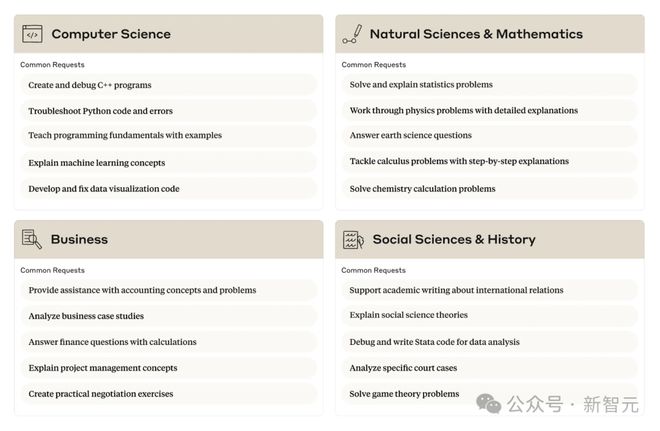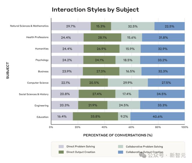 研究发现,学生使用Claude的主要目的,是跨学科地创建和优化教育内容,这类对话占比达到39.3%。