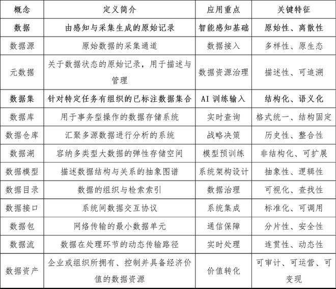 在人工智能工程体系中,“数据”已不再是单一的信息元素,而是构成整个智能系统认知能力的基础单元,其内涵也演化为一套涵盖采集、组织、建模、流通等多个层面的系统性术语体系。要实现对数据资产的高效构建与科学治理,首要任务是厘清与数据相关的一系列似是而非的概念,搭建起有逻辑、有层次的数据工程认知框架。