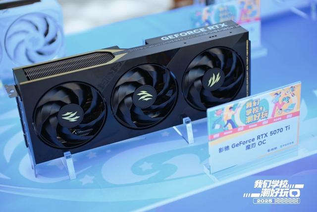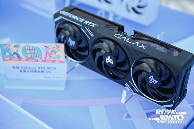 影驰GeForce RTX 5070金属大师黑金版 OC则是影驰展位上,收获同学购买意愿最多的显卡。作为金属大师系列的产品,它同样拥有铝合金装甲设计和三把90mm霜环风扇,颜值、散热能力都是行业第一梯队水平。其核心同样基于Blackwell架构,6144个CUDA核心,以及12GB GDDR7显存共同铸造了强劲的游戏性能。再加上相比前几款更为亲民的价格,确实更适合学生选购。
