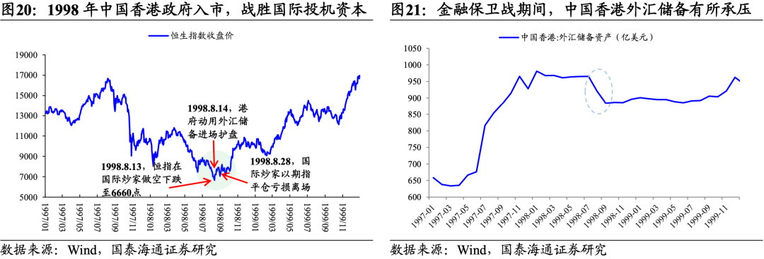 与日韩所采用的平准基金有别,中国香港“政府资金”稳定市场的操作更为简单直接。1998年中国香港金融保卫战爆发,港府直接入市抵御国际投机商。自1997年以来,以索罗斯为代表的国际对冲基金对东南亚各国连番施压,通过投机做空使泰国、马来西亚、印度尼西亚等国的外汇瞬间倾覆。随后,对冲基金将矛头对准港币。1998年8月,国际炒家疯狂抛售港币,港府一反过去“积极不干预”的做法,开始组织港资、内资进入市场,并于8月14日动用外汇储备正式进入股票与期货市场。对于国际炒家的疯狂抛售,港府照单全收,将恒指和期指始终维持7800点以上。最终在8月28日股指期货交割之日,迫使投机资本亏损立场。