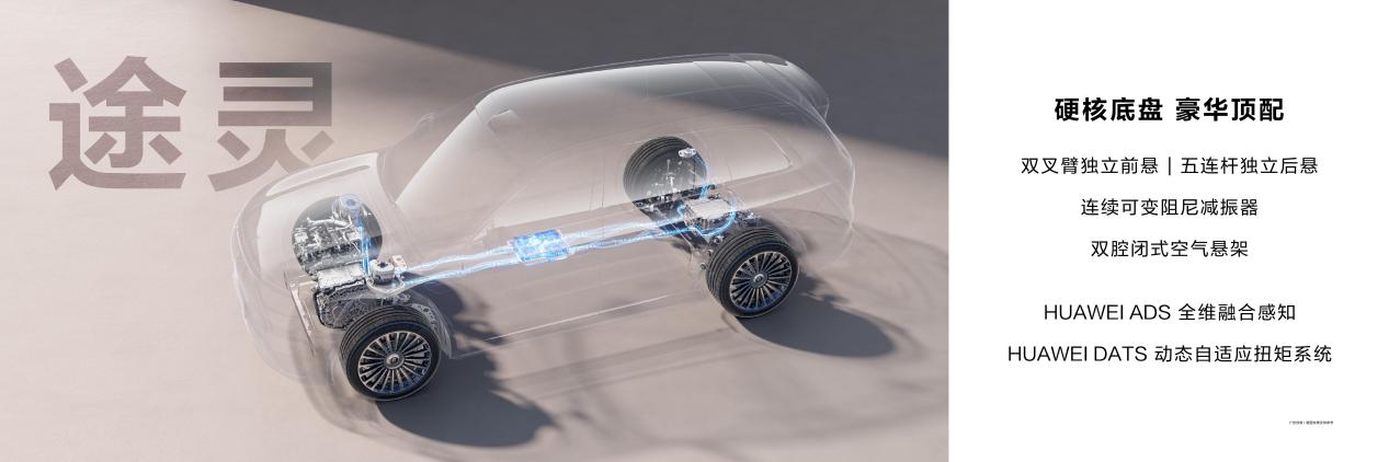 问界M8基于华为途灵平台打造,采用增强型前双叉臂及后多连杆独立悬架,全系标配双腔闭式空气悬架和EDC电控可变阻尼减振动器。配合HUAWEI MFSS多模态融合感知系统,可实现每秒扫描路面20次,悬架每秒100次调整,能够平稳应对不同路况。
