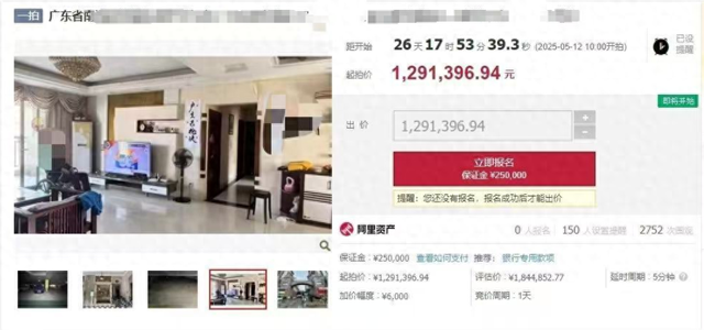 在某法拍平台,记者找到了该待拍卖的房产。拍卖公告显示,该房产位于季华七路2号怡翠玫瑰园17座,建筑面积:150.24 ㎡,一同拍卖的还有该小区一处地下车位。综合拍卖的参考价为1844852.77元,起拍价为1291396.94元(即参考价70%)。参与竞拍的保证金为250000元;增价幅度为6000元/次。