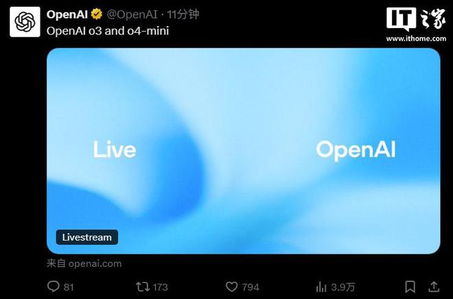 IT之家 4 月 17 日消息,在今日凌晨的直播中,OpenAI 正式发布了o3 和 o4-mini 模型。IT之家汇总内容如下: