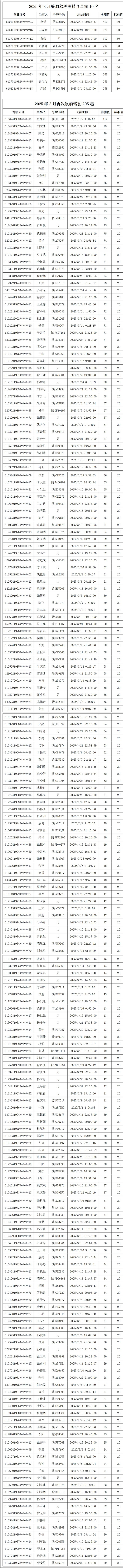 2025年3月全省共查处酒后驾驶3874起。其中,饮酒驾驶3040起、醉酒驾驶834起、再次饮酒驾驶205起。9人因饮酒后或者醉酒驾驶机动车发生重大交通事故构成犯罪被终生禁驾。现对醉酒驾驶酒精含量前10名及205名再次饮酒人员进行曝光。