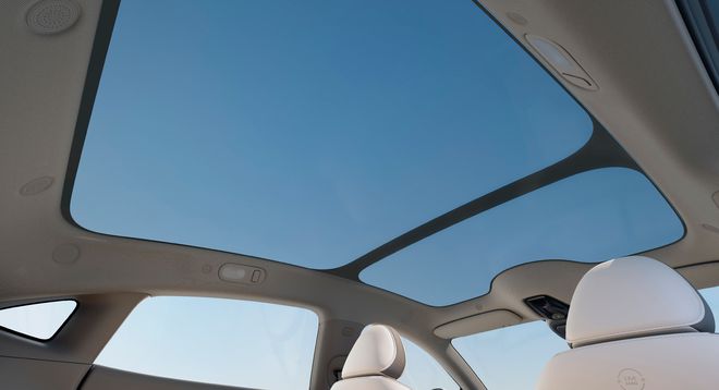 这是同级车型中较为独特的配置。据官方数据,该天幕能隔绝99.9%的全波段紫外线,防晒能力相当于SPF130+、PA++++级别防晒霜。