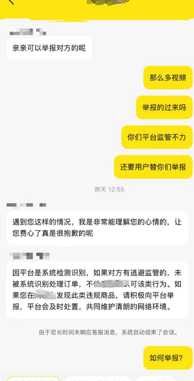 江苏的王女士看到后气愤不已,发布举报投诉帖文。4月16日,王女士向记者透露,她认为,这类疑似“虐杀动物”的视频不该在平台出现。一位与王女士类似的热心网友向平台举报后,得到客服人员回复称,“因平台是系统检测识别,如果对方有逃避监管的未被系统识别处理订单,不代表平台认可该类行为。”4月17日,记者也跟该平台取得联系,一名客服人员回复称,已注意到相关视频,对于可能存在“虐待动物”的行为,平台这边肯定是不允许的。有律师告诉记者,商家如果发布的商品广告。含有小猫小狗被咬死的内容,血腥要素过多,属于虐待动物情形,也可能会对未成年人产生不良影响。