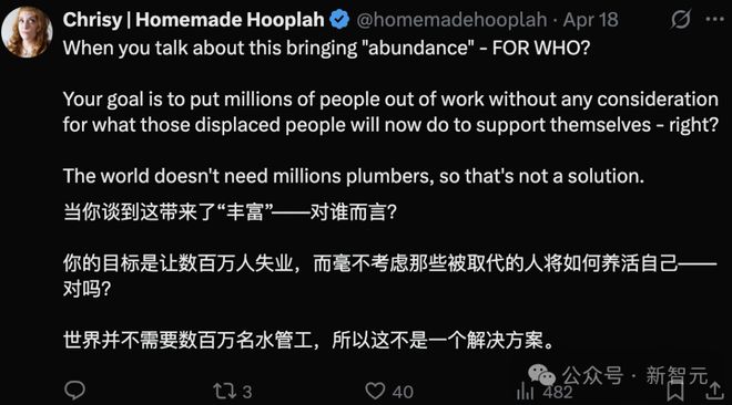 有网友表示「自动化经济」就是让人失去工作的经济,加入贫富分化的经济,对人类没有任何好处。