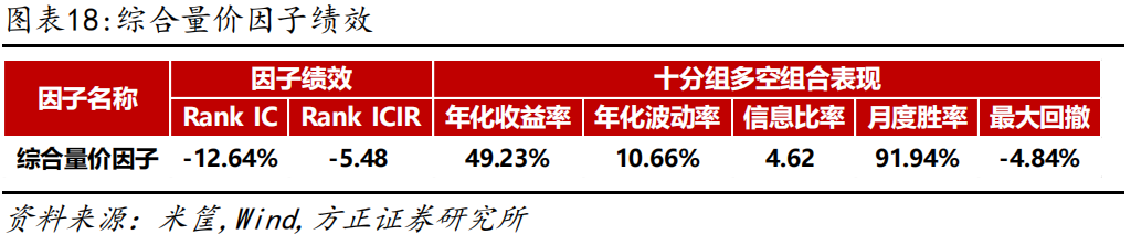 进一步我们将上述11个因子正交化后简单等权合成为综合量价因子,其表现相较于单个因子大幅提升。