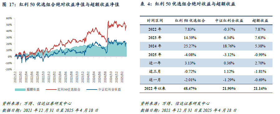 在前期报告《分域选股系列之三:红利策略宝典:从经验逻辑到可落地的增强方案》中,我们构建了红利50优选组合。组合在高股息收益的基础上,叠加线性多因子模型进一步增强组合资本利得收益,并采用Barra风格因子约束组合风格暴露。更进一步参考三维红利超额择时模型的观点,在保证大红利风格不漂移的前提下,细调红利风格暴露度,利用择时进一步增厚收益。
