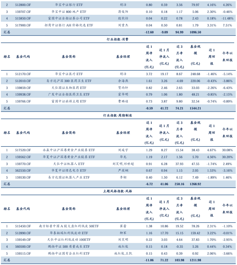 附录1:本周各类型ETF净流入TOP5产品信息一览
