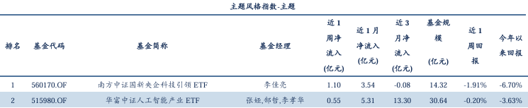 风格主题ETF方面,本周资金净流出约12.95亿元,合计规模为5121.61亿元。其中,风格ETF净流出11.06亿元,合计规模为1211.98亿元;主题ETF净流出1.88亿元,合计规模为767.61亿元。本周净流入相对较多的产品包括南方标普中国A股大盘红利低波50ETF、南方中证国新央企科技引领ETF。