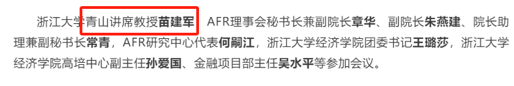 浙江大学金融学院4月14日官方消息:2025年4月13日,浙江大学金融研究院(AFR)第三届理事会第五次会议在浙江大学紫金港校区召开。其中提到了浙江大学青山讲席教授苗建军。不过之后文章又修改,删除了这句话。