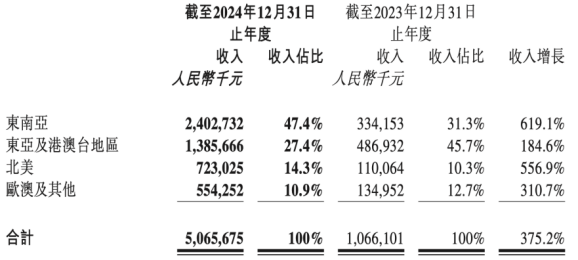 2024年,泡泡玛特的海外市场收入超过50亿,增长了375%,海外市场占比接近5成,3年时间,几乎在海外再造了一个泡泡玛特。