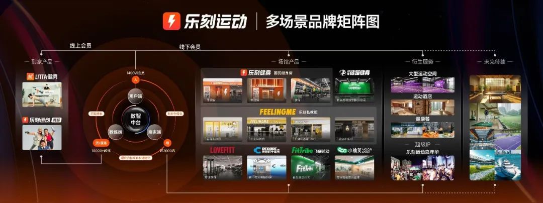 Lovefitt是专业铁馆,飞踹是体能运动社区,小瑜荚是瑜伽普拉提馆,还有羽毛球馆、乒乓球馆、居家健身品牌LITTA等。