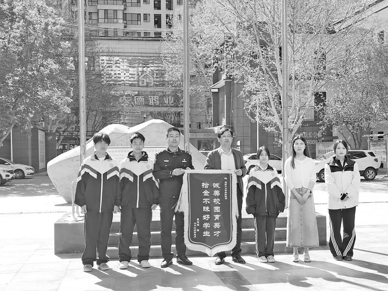 4月14日,裴先生专程定制了一面写有“诚美校园育英才 拾金不昧好学生”字样的锦旗,并委托红旗街派出所送到学校。面对大家的赞誉,3位少年只是腼腆回应:“这是我们应该做的。”