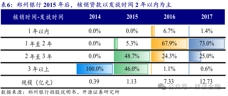 商业银行在营收增长较好时,可选择核销收回可能性更高的贷款,平滑未来盈利波动。例如郑州银行在2015年之前,主要核销发放时间3年以上的贷款;2015年以后以核销发放时间2年以内的贷款为主。发放时间在2年以内的客户,其经营情况和还款能力仍有改善的可能,故核销后收回可能性更高。银行可通过此方式,在营收增长较好时将这部分贷款核销至表外,未来收回时拨备回拨至利润表,平滑经济周期对盈利的影响。