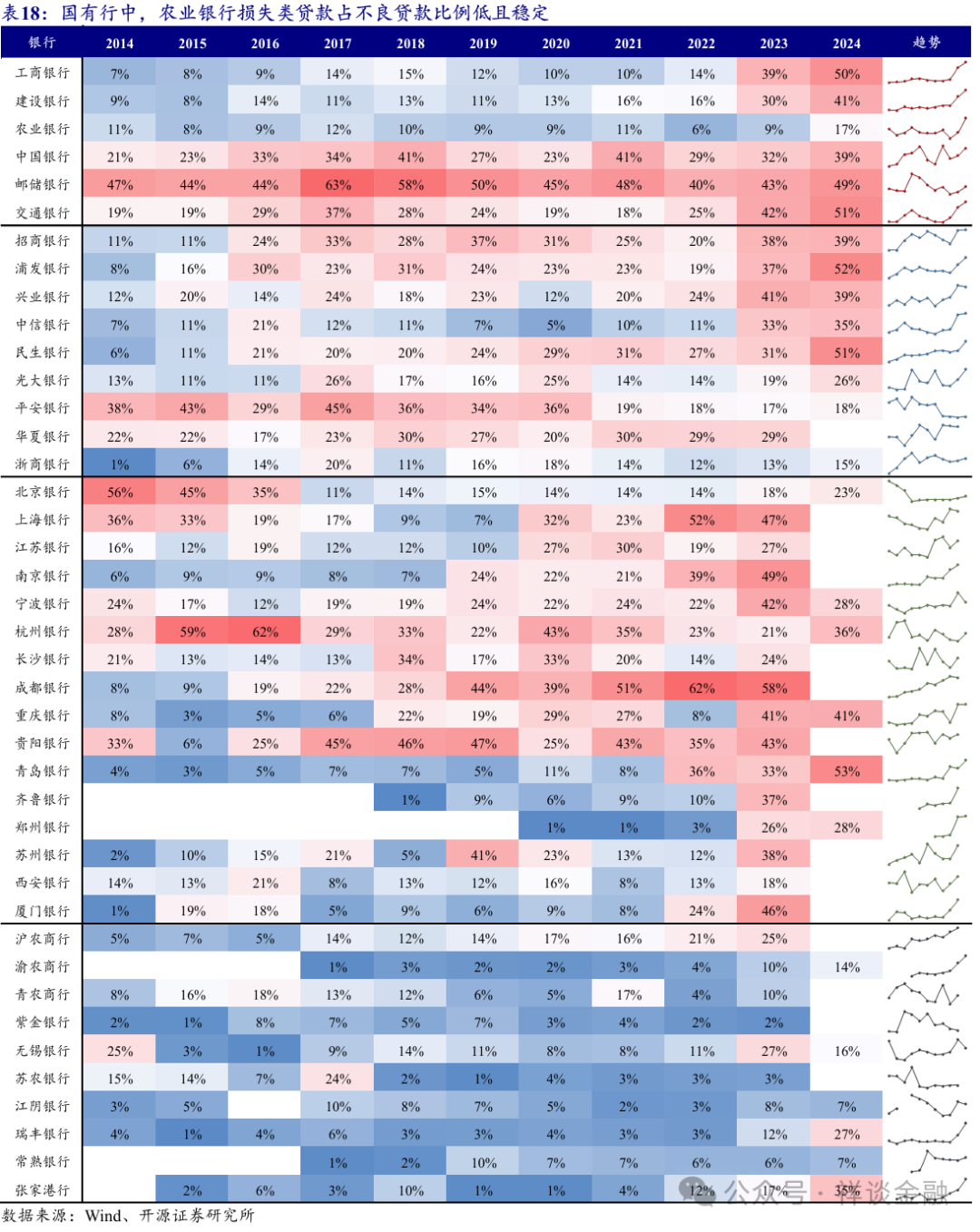 我们认为国有行具有较强的拨备释放理论基础:第一、受新资本管理办法并行期要求,超额损失准备规则有利于实施资本计量高级法的五家国有行,同时国有行非贷资产损失准备计提充分,超额损失准备空间充足;第二、国有行具有较高的资本缓冲空间,同时未因递延税而扣减核心一级资本,未来不良处置不易产生递延税等非生息资产对资本的消耗,更具拨备调节空间。此外建行和农行实际计提的超额拨备高于可计入二级资本的上限,农业银行亦兼具不良资产结构优势(损失类贷款占比低),故拨备释放可行性更高。