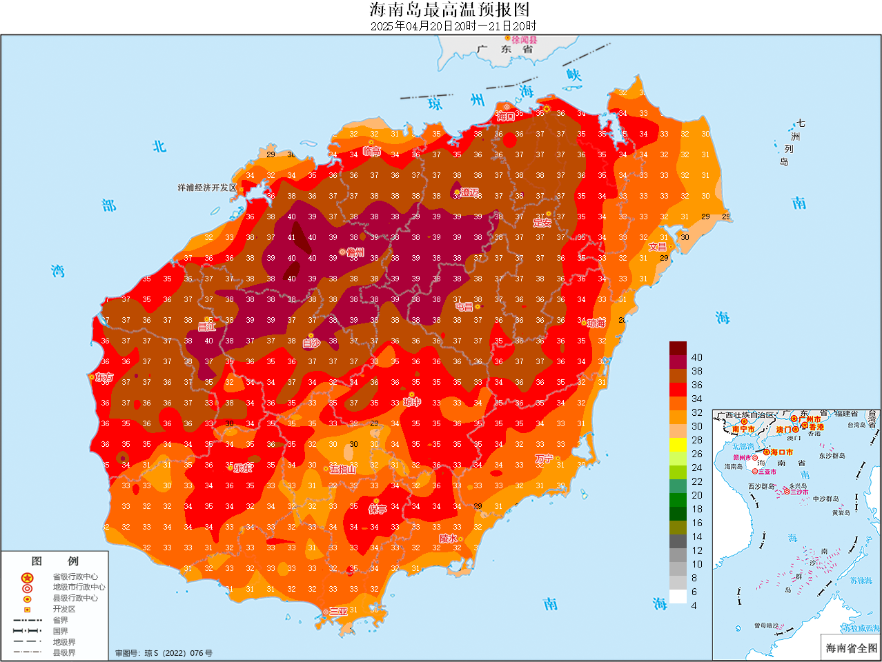海南省气象局2025年04月21日09时00分继续发布高温四级预警:预计4月21日白天,海口、澄迈、临高、屯昌、儋州、白沙和昌江等7个市县的大部分乡镇将出现37摄氏度以上的高温天气,请有关单位做好防暑降温、森林防灭火等相关工作。