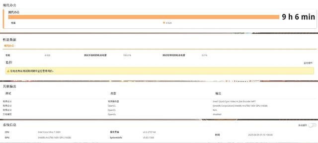 作为商务向的产品,戴尔Pro 14 Premium的续航能力值得关注。UL Procyon一小时Office办公测试掉电量仅为9%,表现还是相当不错的。PCMark 10办公模式续航测试为9小时6分钟,满足一天不插电续航没有太大问题。