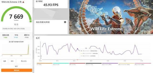 酷睿Ultra 7 268V处理器集成了英特尔锐炫140V核显,3DMark Solar Bay光追性能实测16901分,表现相当不错;Wild Life Extreme DX12性能得分7669,满足1080p 中低画质的3A游戏需求也是不成问题的。